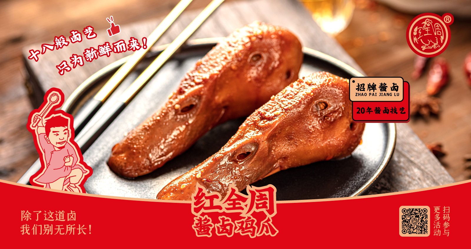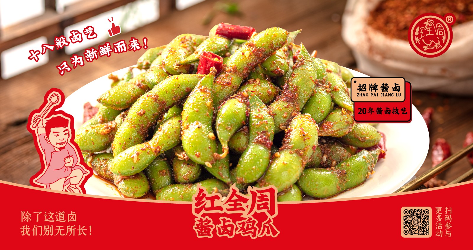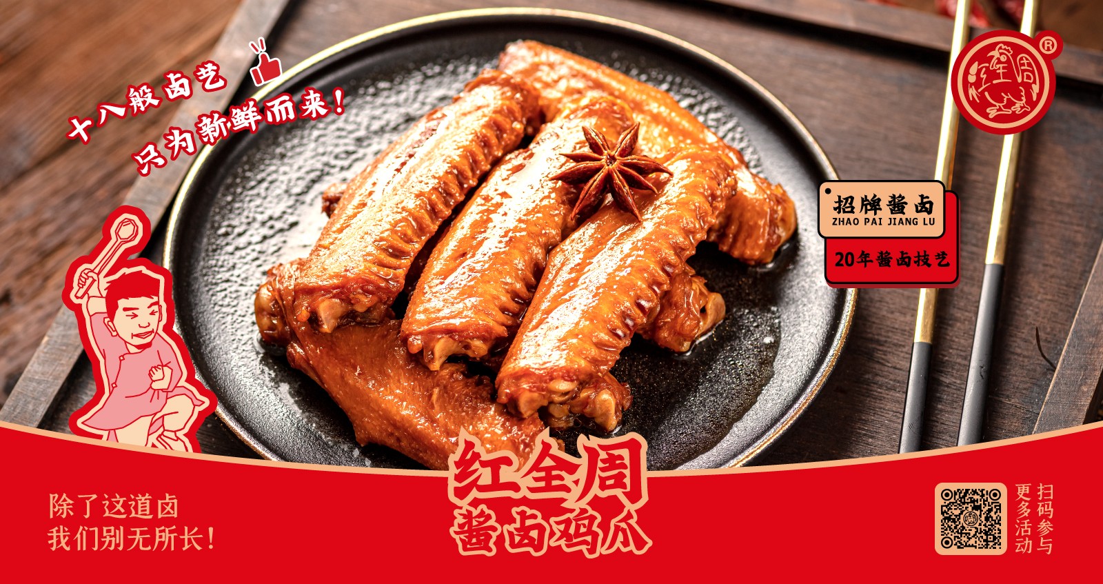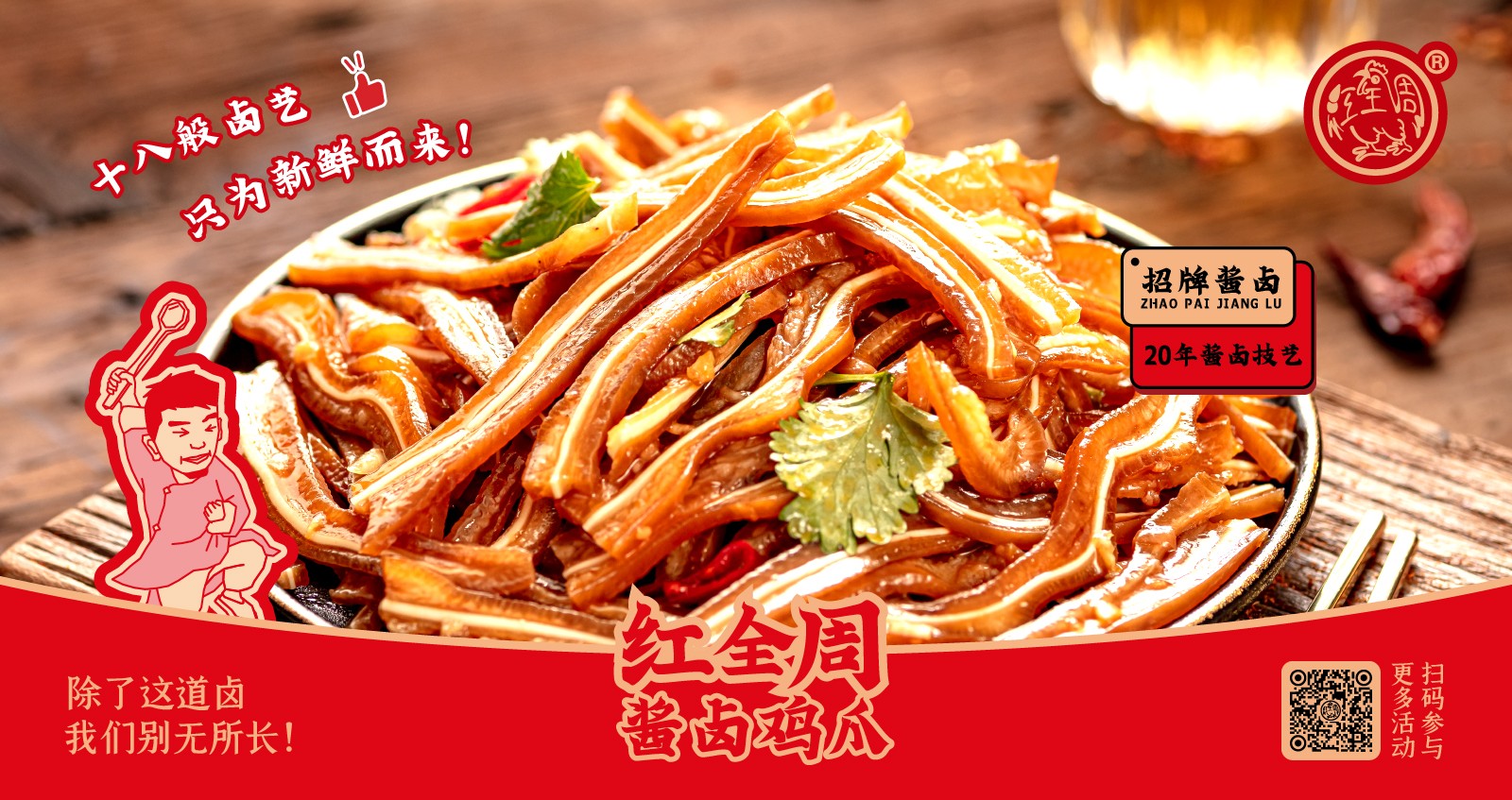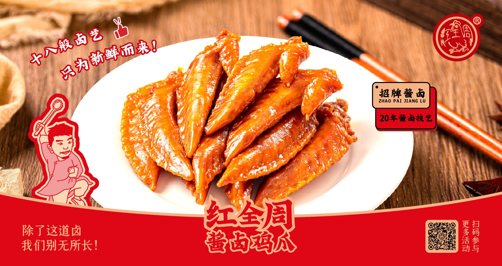 紅全周品牌創(chuàng)立于2012年,其生產(chǎn)總部坐落在以“紅全周雞爪”聞名的福建泉州市南安洪瀨鎮(zhèn),經(jīng)張福來(lái)師傅多年研制而成的獨(dú)家秘方,獨(dú)特的鹵制工藝,以“鮮、香、韌、辣”的特點(diǎn),贏(yíng)得廣大食客的交口稱(chēng)贊。紅全周繼承中華美食傳統(tǒng),堅(jiān)持以“細(xì)微處見(jiàn)風(fēng)范,毫厘間定乾坤”的服務(wù)準(zhǔn)則,遵循現(xiàn)代健康飲食理念,精選上等食材,致力為消費(fèi)者提供安全、健康的美食新體驗(yàn)。